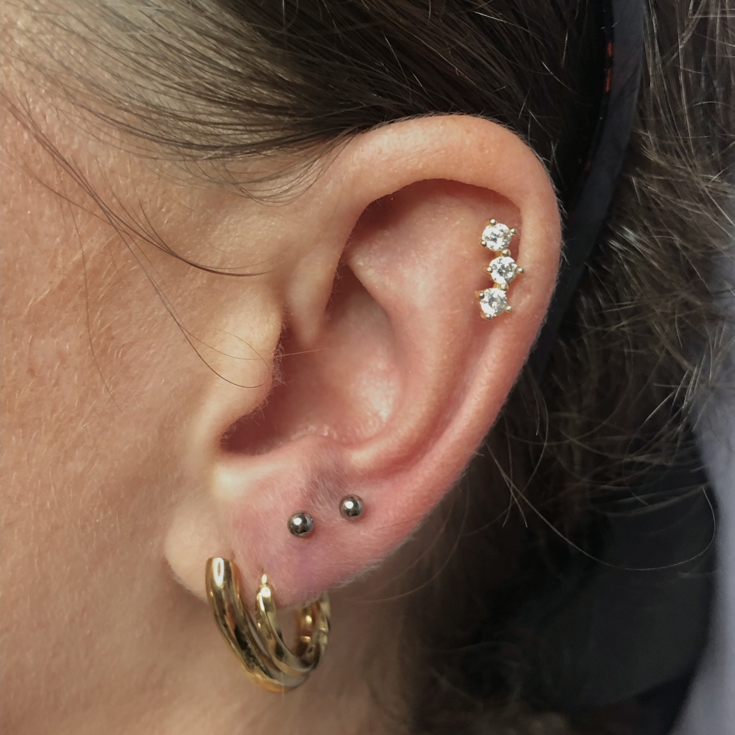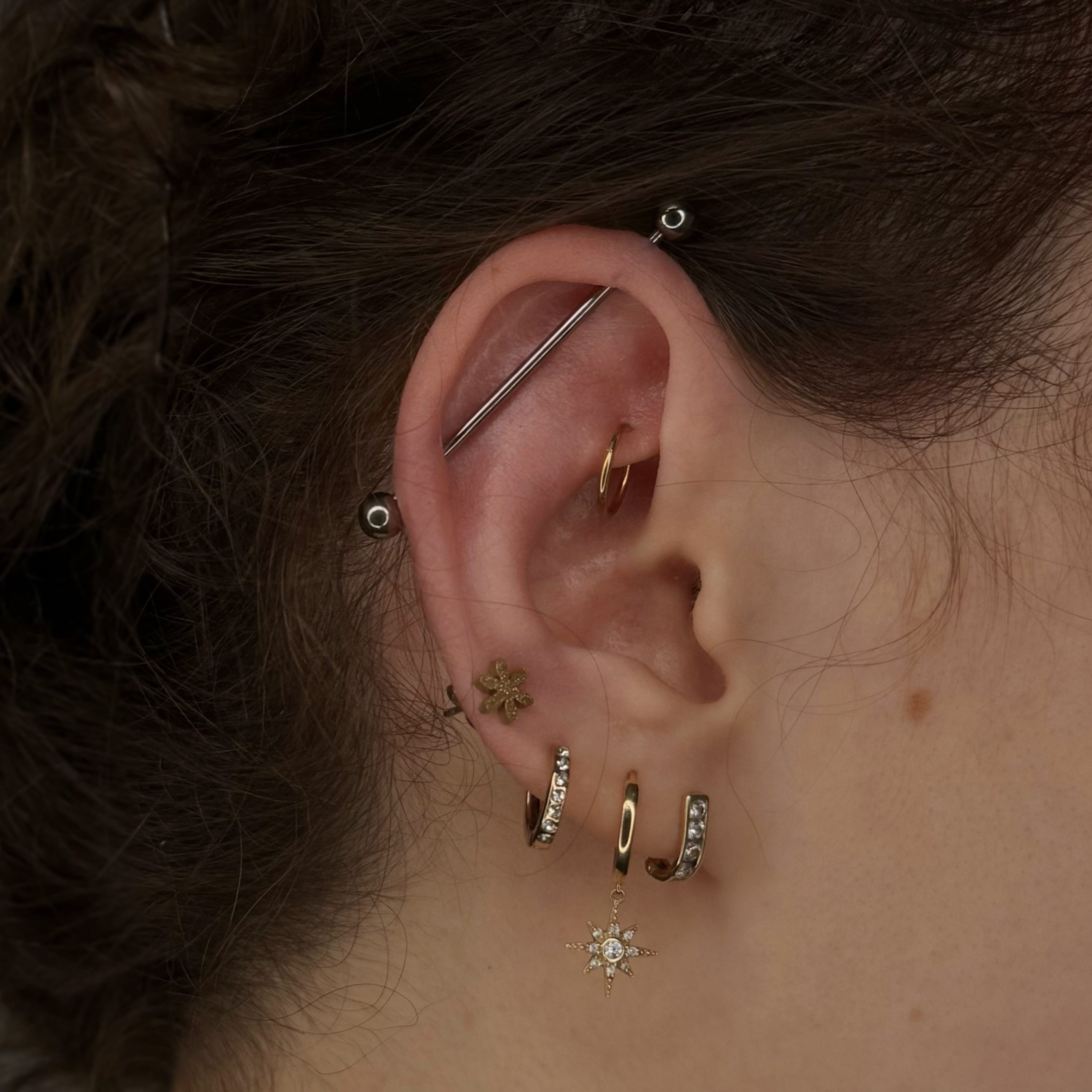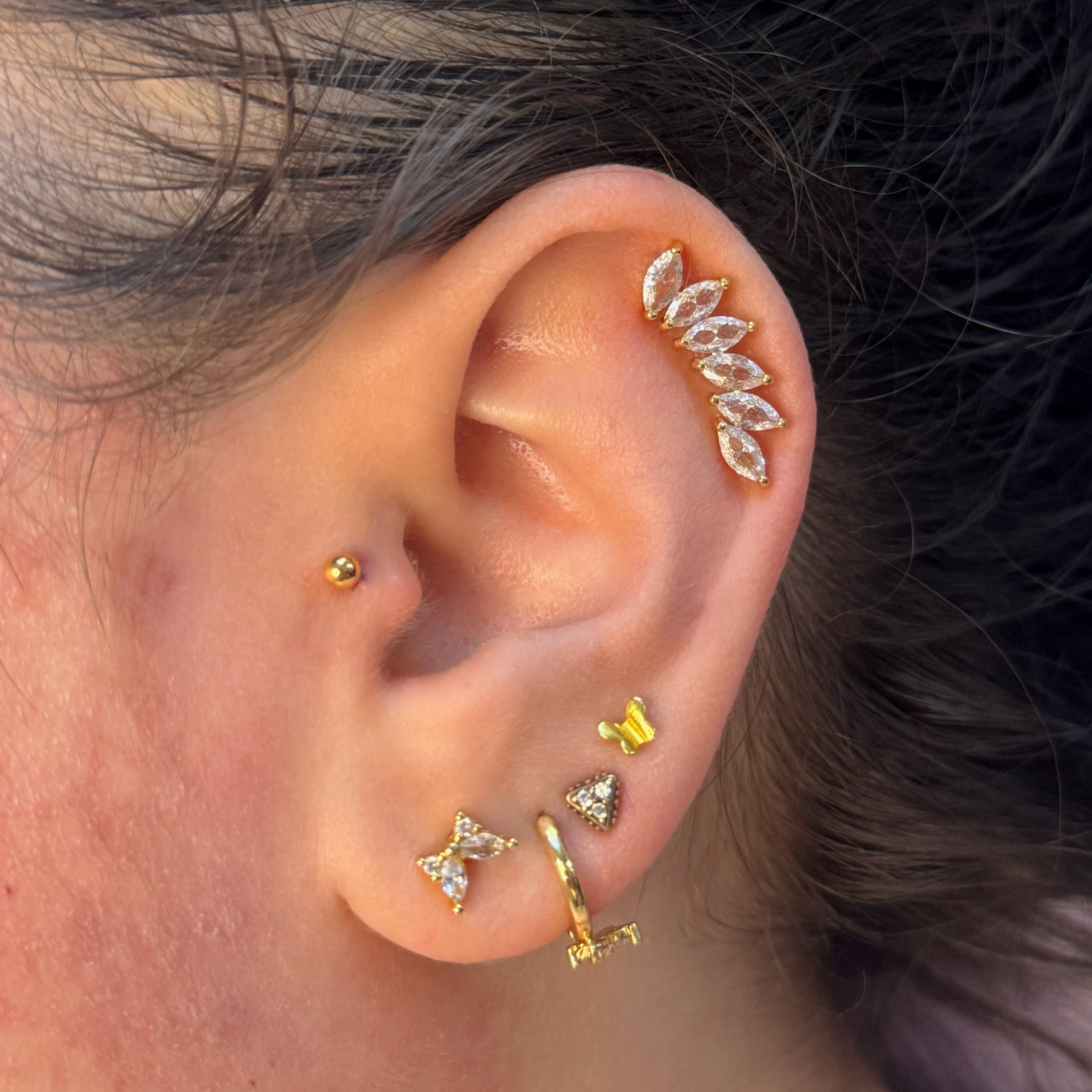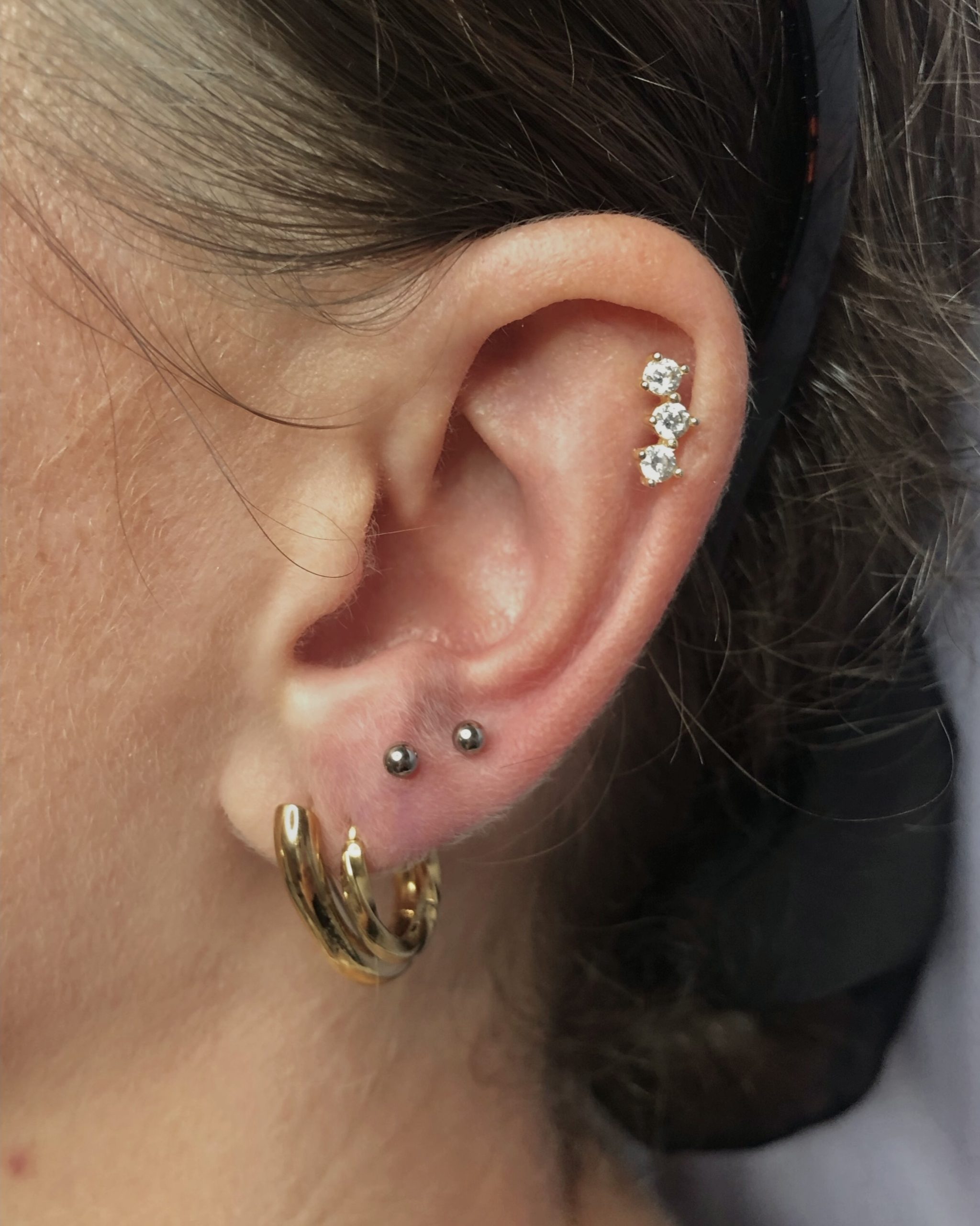 ✔ Piercing uszu – lobe, upper lobe, helix, forward helix, tragus, anti-tragus, rook, daith, conch, industrial.